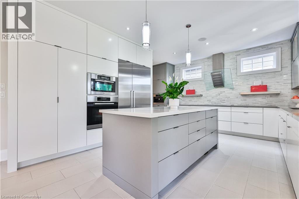 Discover unparalleled elegance in this luxurious executive home nestled in the heart of downtown Bronte. Designed for the discerning homeowner, this two-level residence offers a harmonious blend of modern design and timeless sophistication—all within walking distance to the lake, boutique shops, and upscale amenities. Step into the bright, open-concept main level, where expansive living and dining areas set the stage for both intimate family gatherings and grand celebrations. The state-of-the-art gourmet kitchen, outfitted with premium Miele built-in appliances, quartz countertops, and custom cabinetry, will cater to the most discerning culinary tastes. The home office/study provides privacy and a space to work or relax with a good book. Ascend to the second level to experience a private sanctuary designed for relaxation and indulgence. Here, a lavish master retreat awaits, complete with His and Her spa-like ensuites that exude serenity and generous walk-in closets to accommodate your lifestyle. In addition, three large, well-appointed bedrooms—each featuring its own elegantly designed washroom—ensure comfort and privacy for family members or guests. The fully finished lower level further enhances the home’s appeal, featuring a versatile recreation room ideal for entertainment and relaxation, along with a dedicated gym area to support your wellness routine. There is an additional family room, guest bedroom and washroom for family and friends when visiting. Step outside onto your covered terrace with a gas fireplace and enjoy entertaining outdoors in your private, landscaped backyard—an oasis of lush greenery and tasteful hardscaping enclosed by a secure fence, providing both tranquillity and peace of mind. Embrace the epitome of luxurious, modern living in a home where every detail is thoughtfully curated for comfort and style. (id:59646)