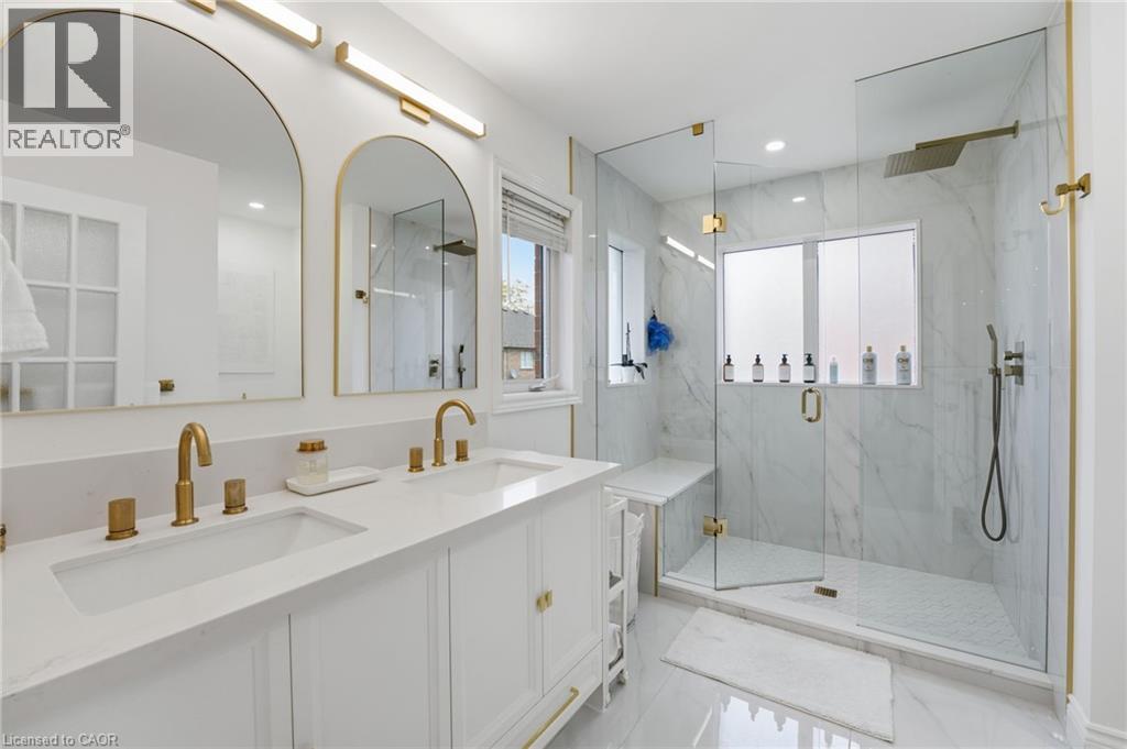 Welcome to this beautifully updated over 2,500sf of living space, turnkey 3+1 bedroom, 4-bath detached home located in the desirable, family friendly Fifty Point community. This thoughtfully designed and upgraded home features an inviting layout, with a stunning kitchen open to the family room. The main floor layout is perfect for everyday living with the added bonus of convenient entertaining with a separate formal dining and sitting area. Upstairs there is a spacious primary suite with a renovated luxury ensuite bathroom including heated floors. You'll also find two additional bedrooms, and another renovated full 4-piece bathroom. Additionally, the upper-level features an upgraded laundry room, adding convenience and function for busy families. Once downstairs, you will find a fully finished basement which offers even more living space, including a bonus room with a 3-piece ensuite bathroom, perfect for guests, an in-law suite, an office, or a home gym. This is a truly move-in-ready home in one of Stoney Creek's beautiful lake communities. Conveniently located minutes to the lake, marina, conservation trails, parks, schools, Costco, shopping, and highway access. Over $100,000 in recent renovations (windows, custom blinds, graded backyard, and more) -full upgrade list available upon request! (id:59646)
